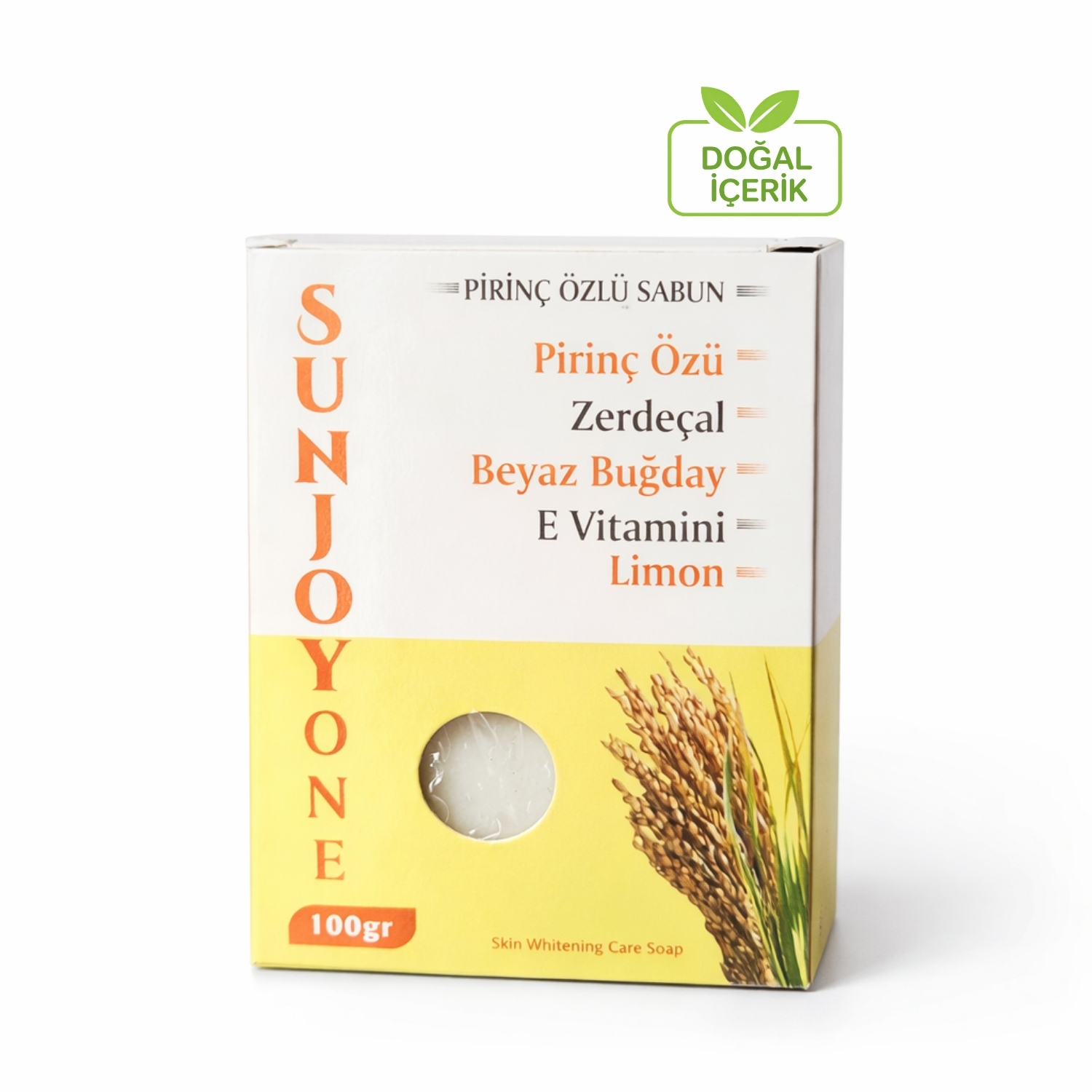 Sunjoyone Pirinç Özlü Sabun, cilt görünümünü daha canlı, dengeli ve pürüzsüz göstermeye yardımcı olmak üzere özel olarak geliştirilmiştir. İçeriğinde bulunan Pirinç Özü, Zerdeçal, Beyaz Buğday, E Vitamini ve Limon ile günlük cilt bakımınıza destek sağlar.